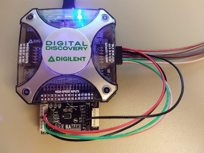 À l'aide d'un SDK Digital Discovery et de WaveForms, il est possible de communiquer avec un capteur numérique représentatif. Avec un peu d'effort, la communication et la configuration peuvent être testées, ainsi qu'une interface graphique simple présentée. Certaines routines de test automatique peuvent être implémentées pour le contrôle de la conception.