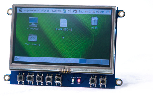 Cet afficheur TFT graphique couleur (480 x 272 pixels) avec dalle tactile est conçu pour venir s'enficher sur un module BeagleBone Black (non inclus) via des connecteurs mâles présents à l'arrière de celui-ci.