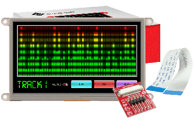 L'afficheur dispose de 16 ports d'entrées/sorties configurables (avec tolérance 3,3V uniquement ou de 3,3V à 5V), de ports série, SPI et I2C™ et d'une sortie audio pour restituer des fichiers sonores au format ".WAV" le tout accessibles sur un connecteurs ZIF 30 broche 0,5mm pour nappe FFC (livrée).