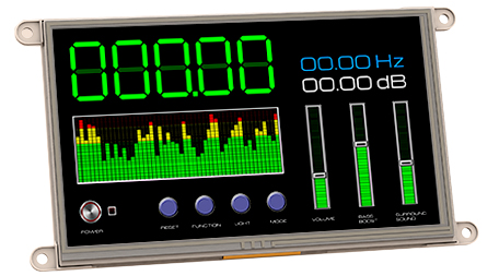 Pour ce faire, de nombreux outils présents dans le "Workshop4 IDE" vous permettrons par simple opération de "Drag & Drop" d’importer et de placer (en choisissant l’emplacement au pixel près) divers éléments sur votre afficheur tels que des boutons, des claviers, des digits, des voyants, des interrupteurs, du texte, des photos, des bargraphs, des curseurs, des commutateurs, etc... Cette opération vous permettra de concevoir très rapidement vos interfaces en voyant instantanément le résultat que vous obtiendrez mais également en générant le code d’initialisation de ces éléments dans votre code source "4DGL".