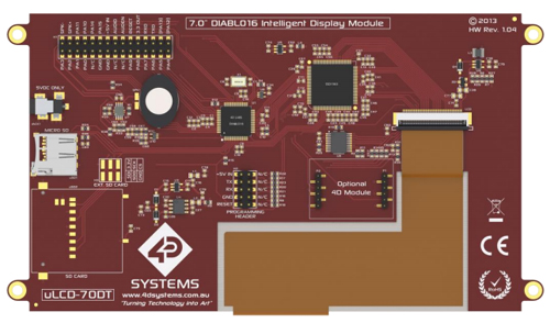Pouvant être utilisé de façon "autonome" (sans nécessiter l’utilisation d’un microcontrôleur externe), cet afficheur dispose également au dos d'un connecteur capable de recevoir une carte au format microSD™ (la carte mémoire n'est pas livrée). Cette carte pourra être utilisée pour stocker des données, des sons ou des images afin de les rappeler immédiatement à l'écran.