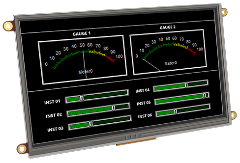 Pour ce faire, de nombreux outils présents dans le "Workshop4 IDE" vous permettrons par simple opération de "Drag & Drop" d’importer et de placer (en choisissant l’emplacement au pixel près) divers éléments sur votre afficheur tels que des boutons, des claviers, des digits, des voyants, des interrupteurs, du texte, des photos, des bargraphs, des curseurs, des commutateurs, etc... Cette opération vous permettra de concevoir très rapidement vos interfaces en voyant instantanément le résultat que vous obtiendrez mais également en générant le code d’initialisation de ces éléments dans votre code source "4DGL".