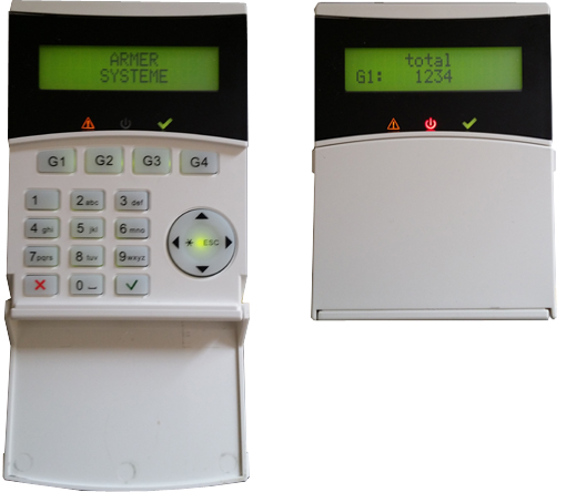 Le clavier dispose d'un clapet de protection venant (une fois refermé) recouvrir ses 17 touches (également rétro-éclairées). Il est auto-protégé à l'arrachement (désactivable par programmation).