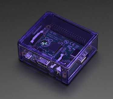 Boîtier de couleur translucide (différents coloris suivant arrivage) avec couvercle amovible permettant de recevoir une carte Raspberry Pi™ (A+) - non livrée.