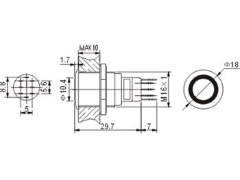 - Type: off - on = (poussoir type NO+NC)