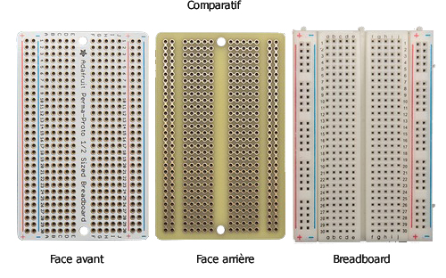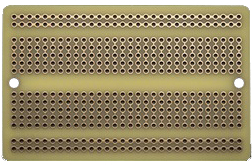 Cette plaque d'essai en époxy au format breadboard avec trous pastillés cuivrées (sur deux faces) reliés par bandes (sur la face arrière) comme sur une plaque sans soudure, vous permettra de reproduire de manière permanante (soudé) vos montages de prototypage réalisés depuis une breadboard (non livrée).