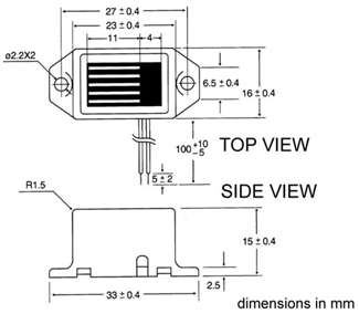 - Dimensions (avec pattes de fixation): 33,5 x 17 x 15,5 mm