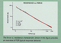 Cette gamme de capteurs de force se caractérise par un changement de leur valeur résistive sous l'action d'une force exercée sur leur surface. Plats et souples, dotés d'une durée de vie de l'ordre de 10 millions d'actons, ils se terminent par des broches à souder. Afin de pouvoir exploiter ces derniers, il conviendra de les associer à une résistance "talon" au sein d'un pont diviseur (voir exemple ci-dessus).