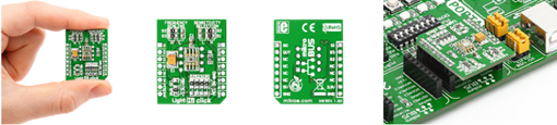Ce module Click Board vous permettra d'ajouter des possibilités de mesure de luminosité à votre microcontrôleur par le biais d'un circuit intégré TSL230BR, lequel s'apparente à un convertisseur lumière/fréquence.