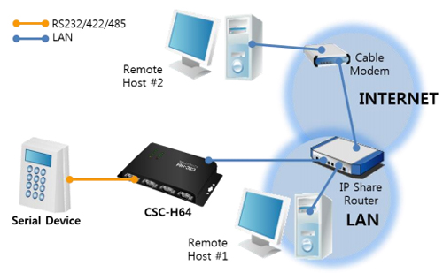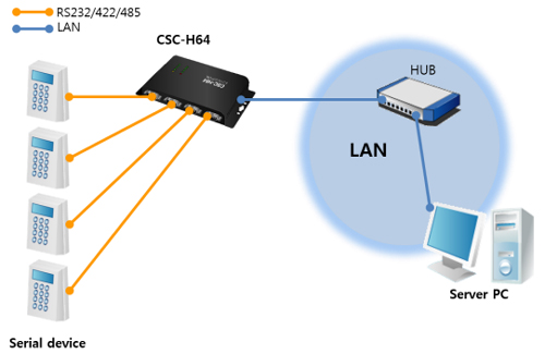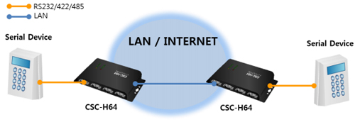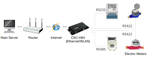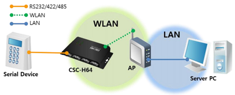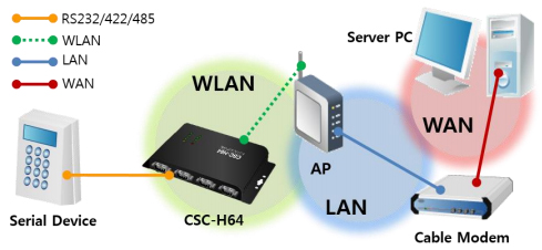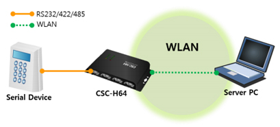 Le boîtier "CSC-H64" permettra donc d'implémenter rapidement une communication réseau LAN/WLAN* à tout périphérique doté d'une simple liaison série. En utilisant le boîtier "CSC-H64", votre application sera dès lors accessible depuis n'importe quel point du réseau.