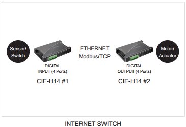 Le boitier CIE-H14A prend en charge le protocole Modbus TCP. Vous pouvez contrôler/surveiller des équipements/capteurs situés dans des endroits distants à partir d'un logiciel PC, d'une application mobile, d'une IHM ou d'autres appareils Modbus TCP.