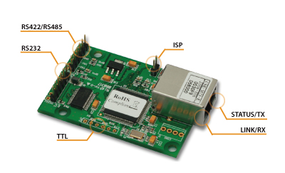 Le module CSE-M73 fait office de convertisseur TCP/IP vers 1 port série (TTL) / RS232 / RS422 / RS485. Alimentation: 5 V - RAM: 64 K.