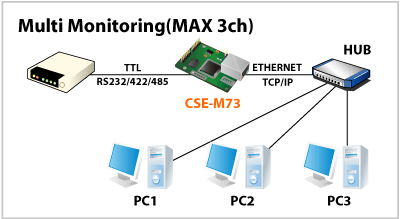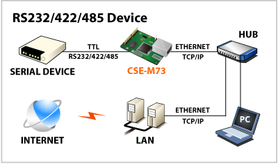 Ce module permettra donc d'implémenter rapidement une communication réseau TCP/IP à toute base microcontrôlée dotée d'une simple liaison série. En utilisant le module "OEM" CSE-M73, votre application sera dès lors accessible depuis n'importe quel point du réseau (et éventuellement depuis l'extérieur via Internet).
