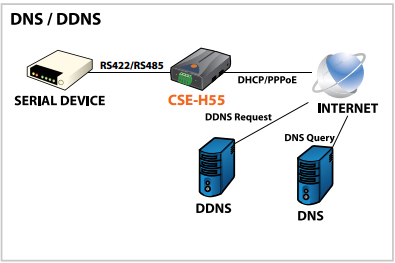 En utilisant le boîtier "CSE-H55N", votre application sera dès lors accessible depuis n'importe quel point du réseau (et éventuellement depuis l'extérieur via Internet).