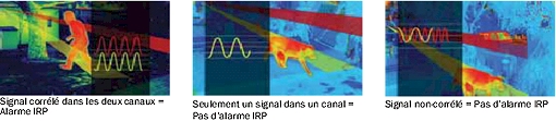 Cette technologie est une amélioration importante par rapport aux détecteurs conventionnels avec deux canaux IRP qui peuvent provoquer des fausses alarmes quand des évenements avec différents signaux n'ayant aucun rapport entre eux, sont détectés simultanément dans chaque canal IRP.