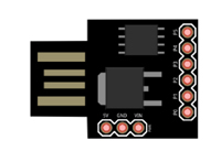Ce présentant sous la forme d'un mini dongle USB, cette petite platine (dotée de 6 ports GPIO) est programmable depuis un PC sous l'environnement IDE des Arduino®.