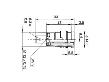 Douille de sécurité isolée de Ø 4mm à encastrer. Pourvue d'une lame de raccordement plate 6.30 x 0.8 tab selon DIN 46 244, en laiton dorée. Pour encastrement dans des tableaux de commande et des châssis d'appareils ayant une épaisseur de paroi max. de 6mm.