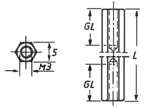Entretoise métal femelle-femelle. Modèle 5 mm. Ø intérieur M3.