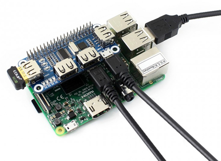 Ce shield permettra d'ajouter 4 ports USB supplémentaires à votre carte Raspberry Pi (non livrée). Il vous permettra également de disposer d'un convertisseur USB <> Série (UART).