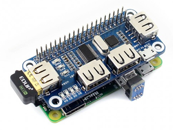 Compatible avec la Raspberry Pi B+ / 2B / 3B / 3B+ / 4 / Zero ou Zero W (non livrées), ajoutez facilement jusqu'à 4 port USB ainsi qu'un convertisseur USB<>UART (pour le contrôle/débogage de votre Raspberry Pi via un terminal série) avec cette platine HAT.