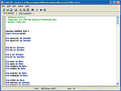 L’environnement "CUBLOC Studio" dispose d’une seconde fenêtre donnant accès à un puissant éditeur dédié à la programmation en langage contact. Ce dernier dispose d’une multitude de possibilités (création / insertion / effacement de cellules, édition des noms et des commentaires liés aux fonctions, etc...).