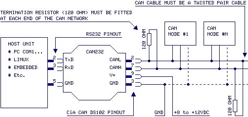 Ce module est un "Dongle" convertisseur CAN232 destiné à être connecté au port RS-232 d'un PC (ou d'un autre système microcontrôlé) afin de vous permettre de bénéficier d'une connexion "CAN" immédiate tout en étant adressé (d'un point de vue logiciel) comme un port de communication série standard, éliminant la nécessité d'avoir recours à un driver supplémentaire.
