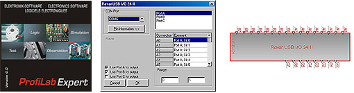 Si vous ne disposez pas de langage de programmation, sachez que nous proposons également en option au bas de la page un logiciel spécialisé appelé "Profilab Expert". Ce dernier est un générateur d'applications "PC" basé sur une "saisie graphique". Ce dernier vous permettra d'afficher, de mémoriser et de traiter les données en provenance de la platine "USB I/O 24R" (uniquement les fonctions liées aux entrées/sorties, sans la gestion SPI™, ni la gestion des capteurs de température). Ce logiciel est optionnel et il n'est pas livré avec la platine.