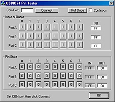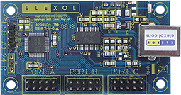 Platine d'interface USB «» 24 ports d'entrées/sorties "tout-ou-rien". Accès aux ports via des DLL ou via un port série virtuel avec des ordres et commandes très simples en "ASCII".