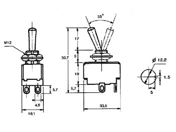 Interrupteur à levier de puissance à 3 positions ON-OFF-ON - Modèle bipolaire (à double contact) pour montage châssis - 6A/250VAC - Cosses à visser (soudage possible)