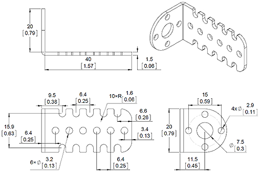 Jeu de 2 supports en aluminium pour motoréducteurs Pololu Ø 20 mm. Livrés avec vis de fixation.