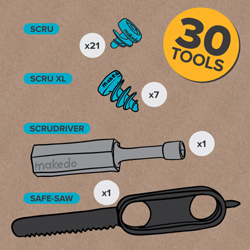 Le sachet contient des vis (de 2 longueurs différentes) à tête spéciale et 2 outils permettant de découper et d'assembler. Bien que toutes les pièces soient en plastique, ce kit doit être utilisé avec précaution et sous la surveillance d'un adulte si utilisé par des enfants.