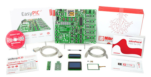 Ensemble idéalement conçu pour disposer de tout le nécessaire pour commencer à développer, à expérimenter et à travailler sur les microcontrôleurs PIC™ avec un tarif avantageux. (Avec compilateur Pascal).