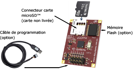 Une fois compilé, votre programme pourra être téléchargé au choix dans la mémoire RAM de l’afficheur (idéal pour les phases de développement), dans sa mémoire flash ou encore dans une carte mémoire microSD™ (non livrée) que vous pourrez insérer dans un connecteur prévu à cet effet au dos de l’afficheur (vous donnant ainsi la possibilité si nécessaire de gérer facilement les mises à jours de vos applications).