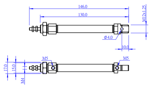 Mini vérin pneumatique à double action (pousser / retenir) pour applications diverses. Course 60 mm.