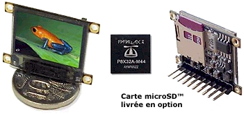 | Ce module embarqué représente une combinaison unique entre un afficheur graphique OLED, un microcontrôleur Propeller™ et un connecteur pour carte micro-SD™ (jusqu'à une capacité de 2 Go) le tout dans un emcombrement de 27 x 23 mm. | ![]() |