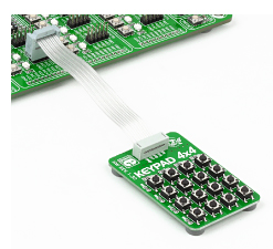 Ajoutez en quelques minutes un clavier de saisie 16 touches à votre application grâce à cette petite platine qui intègre une matrice de boutons-poussoirs. Des exemples de programmes dédiés aux PIC avec les compilateurs BASIC (mikroBASIC), "C" (mikroC) et PASCAL (mikroPascal) sont disponibles afin de vous permettre une prise en main rapide et intuitive.