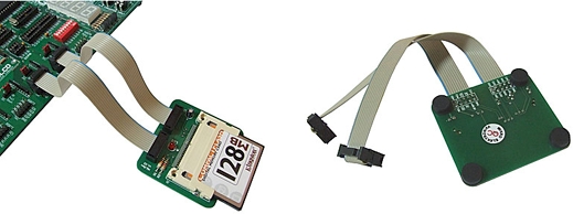 Les exemples de programmes vous permettrons entre autre de lire des données depuis une carte Compact Flash (FAT16), d'écrire des données sur une carte Compact Flash (FAT16), de récupérer les valeurs présentent sur une entrée de conversion analogique/numérique du PIC et les stocker sur la carte compact Flash.