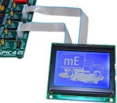 Cette petite platine est spécialement conçue pour raccorder un afficheur graphique 240 x 128 pixels avec driver Toshiba T6963C sur 2 ports d'entrées/sortie de votre starter-kit MikroElektronika au moyen de 2 câbles plats. Un potentiomètre permet de régler le contraste.
