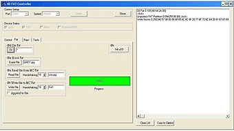 La nouvelle version du Firmware de la platine "µDRIVE-uSD-G1" permet également désormais de pouvoir disposer d'une compatibilité d'accès à la microSD™ au format FAT16. Des commandes spéciales permettent de lire, d'écrire ou d'effacer des fichiers ou encore de connaître la liste des fichiers présent sur la microSD™.