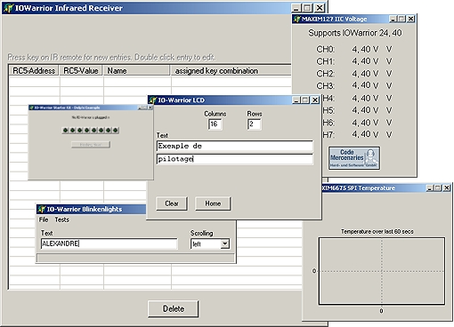 Ils vous permettrons d'afficher, de mémoriser et de traiter les données en provenance du module "IO-Warrior56" (ces logiciels sont optionnels et ils ne sont pas livrés avec le module "IO-Warrior56").