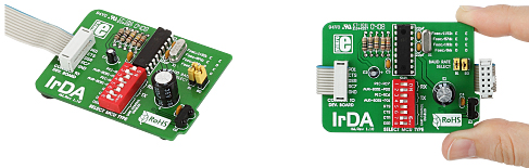 Ce petit module intègre un circuit MCP2155 associé à une diode infrarouge TFDU4101. Il est spécialement conçu pour l'étude et l'évaluation des systèmes de communication IrDA.