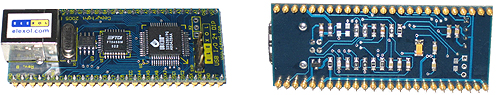 Module DIL 50 broches faisant office d'interface USB «» 24 ports d'entrées/sorties "tout-ou-rien". Accès aux ports via des DLL ou via un port série virtuel avec des ordres et commandes très simples en "ASCII".