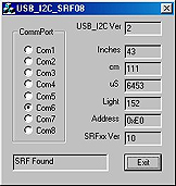 Il vous permettra ainsi de tester rapidement et simplement les modules "SRF02, SRF08 ou SRF10" sur un compatible PC via un petit logiciel dédié (le code source en "C" est livré sur demande) ou en développant vous même votre propre programme de gestion.