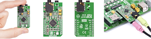 Ce module Click Board vous permettra d'ajouter des possibilités de restitution de fichiers sonores à votre microcontrôleur. Ce dernier intègre un circuit intégré décodeur de type VS1053 capable de prendre en de multiples formats audio.