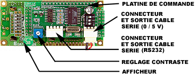 Un autre connecteur 4 broches présent sur le module vous permettra (en association avec un cordon série optionnel proposé également dans la colone de droite) de piloter ce dernier depuis un ordinateur au moyen d'un port RS232.