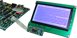 un afficheur LCD graphique 240 x 128 pixels (avec contrôleur T6963C - Toshiba™) au moyen d'une simple liaison SPI™ à partir des compilateurs mikroelektronika BASIC (mikroBASIC), "C" (mikroC) et PASCAL (mikroPascal).