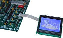 Elle vous permettra de piloter un afficheur LCD alphanumérique 2 x 16 caractères ou graphique 128 x 64 pixels au moyen d'une simple liaison SPI™ à partir des compilateurs mikroelektronika BASIC (mikroBASIC), "C" (mikroC) et PASCAL (mikroPascal).