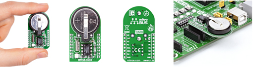 Ce module Click Board vous permettra d'ajouter une horloge temps réel avec fonction calendrier à votre microcontrôleur. Ce dernier est basé sur un circuit intégré DS1307, lequel se pilote via une liaison I2C™. (Prévoir pile en sus pour la sauvegarde).