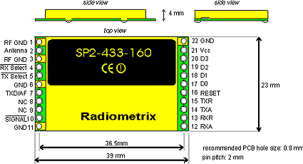 Le "SP2-433-160" est un module subminiature intégrant un transceiver radio half duplex associé à un microcontrôleur de gestion vous permettant de réaliser très simplement des systèmes de transmissions de données "radio" sans avoir à vous soucier de la gestion "radio" proprement dite.