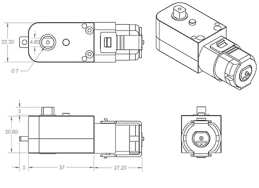 - Dimensions: 64,4x22,3x21 mm (arbre 7 mm à double méplat)